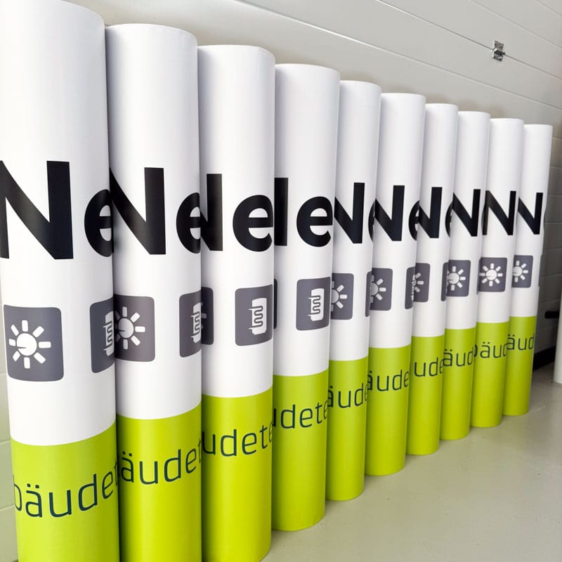 Materialstärke: 510 g/m² PVC-Plane Oberfläche: wetterfest, UV-beständig Reißfestigkeit: hohe Stabilität, schwer zu beschädigen Einsatzbereich: Innen- und Außeneinsatz Druckqualität: hochauflösender Digitaldruck 8 Farbig Temperaturbeständig: von −20 °C bis +70 °C Pflege: leicht abwaschbar